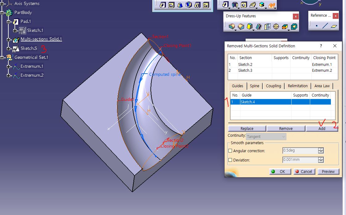 Add 버튼 클릭 후 다른 가이드 스케치 클릭