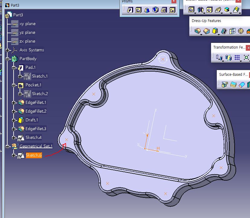 Part Design Tools파트디자인의 다양한 툴 알아보기 Pad,Pocket을 사용해서 모델링 한뒤Drafting 모듈로 도면 내리기 스케치를 시작할때 어디서부터 접근할지 생각하고 시작하는 것이 좋음대체적으